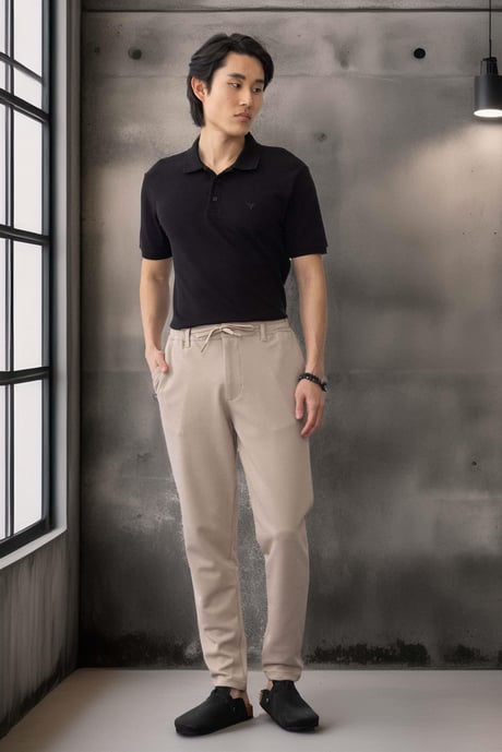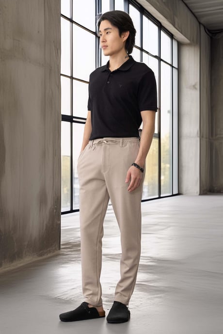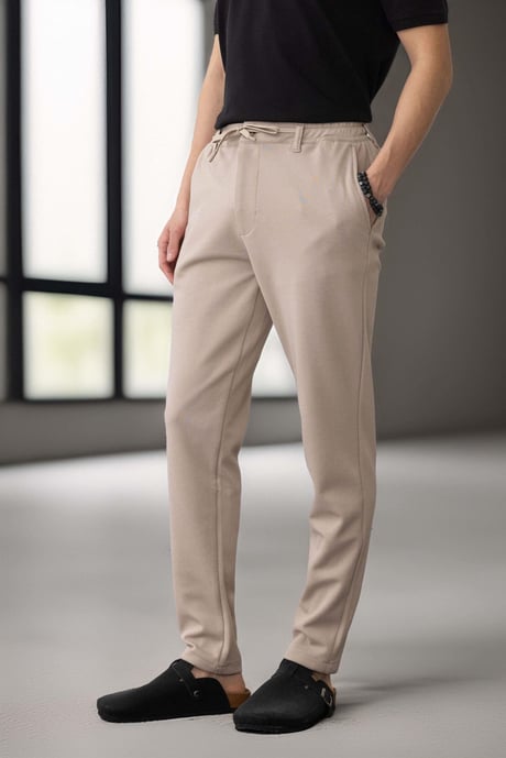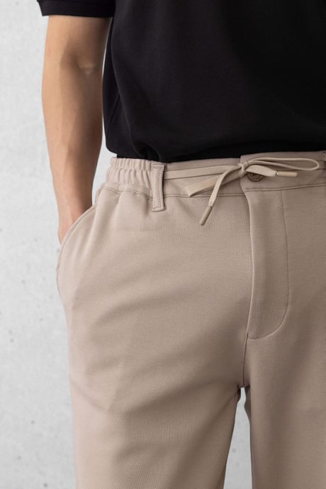 Akira Örme Pike Kumaş Beli Lastikli Fermuarlı Erkek Pantolon - Bej