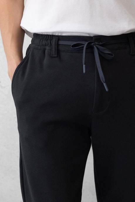 Akira Örme Pike Kumaş Beli Lastikli Fermuarlı Erkek Pantolon - Koyu Gri