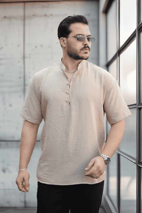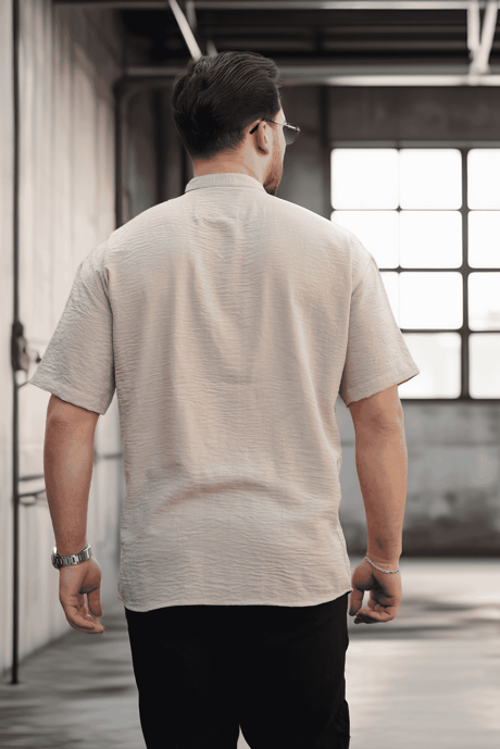 Wes Oversize Yarım Pat Bambu Kısa kol Gömlek - Bej