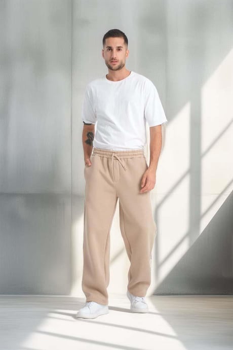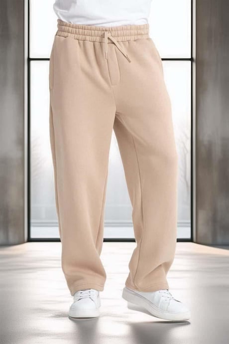 Baggy Kalıp 3 İplik Şardonlu Erkek Eşofman Altı - Bej