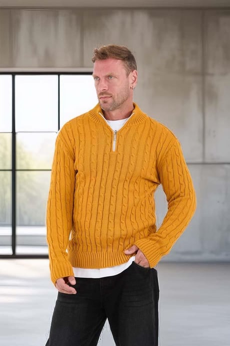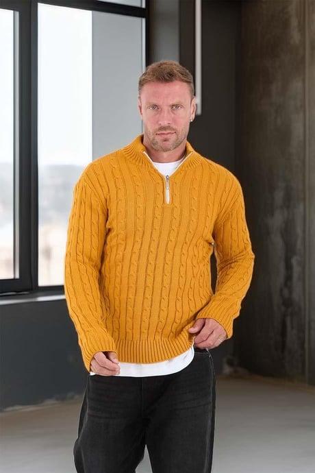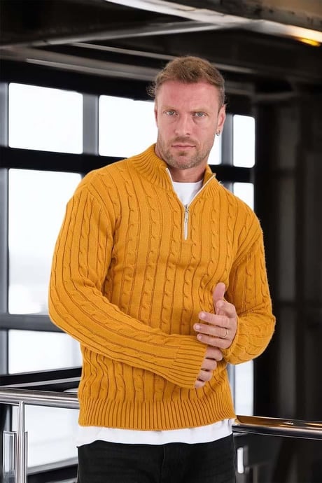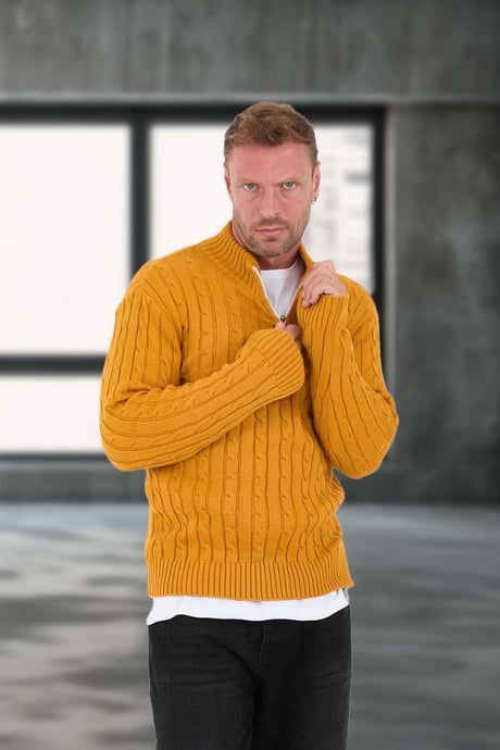 Saç Örgülü Yarım Fermuar Kazak