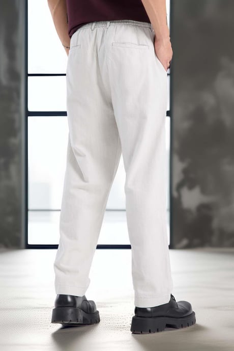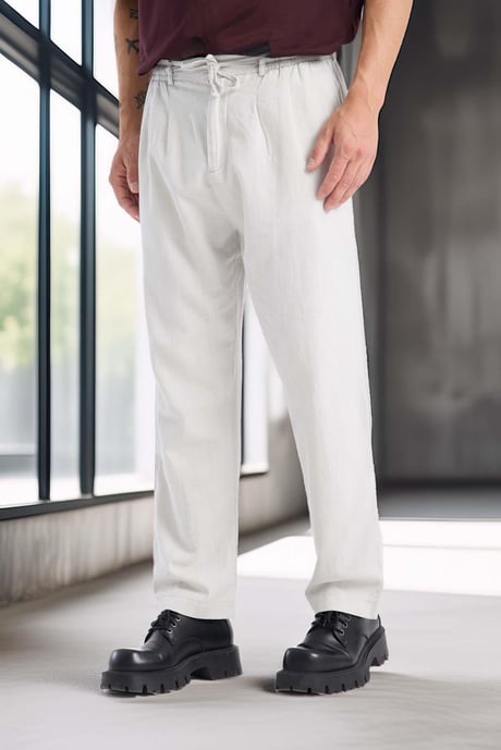 Bergman Keten Görünümlü Pamuklu Flamlı Rahat Kalıp Pileli Erkek Pantolon - Ekru