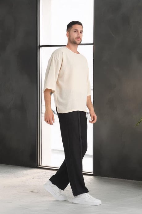 Valiberta'nın özgün tarzıyla Bisiklet Yaka Fakir Kol Oversize Kısa Kol T-shirt! Rahat kalıbı ve şık tasarımıyla öne çıkan bu ürün, gardırobunuzun vazgeçilmezi olmaya aday. Şimdi www.valiberta.com'dan sipariş verin! Manken 185 - 85 L beden