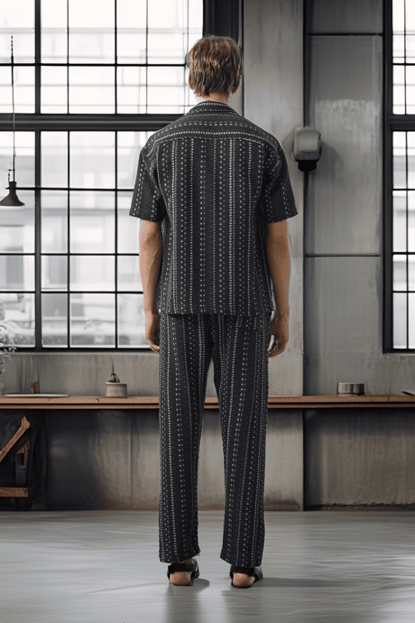 Bohem Çizgili Örme Kumaş Erkek Gömlek - Petrol