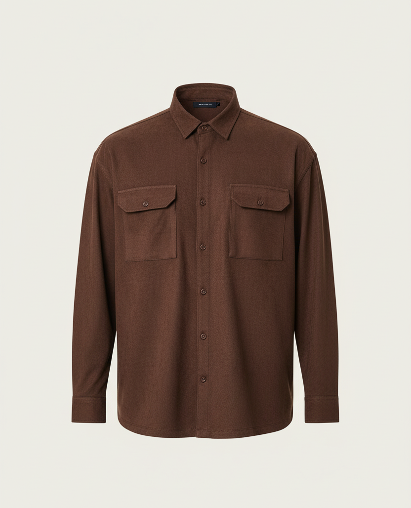 Çift Cepli Oversize İnce Fitilli Erkek Kadife Gömlek - Kahve