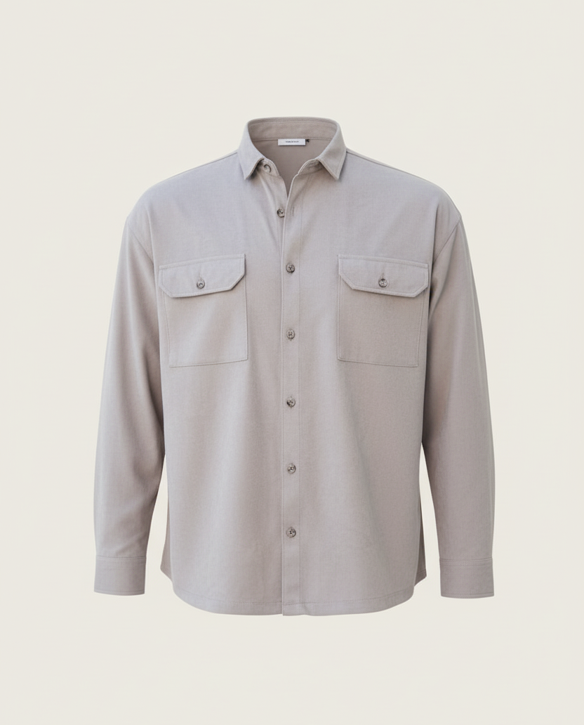 Çift Cepli Oversize İnce Fitilli Erkek Kadife Gömlek - Taş