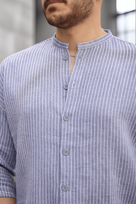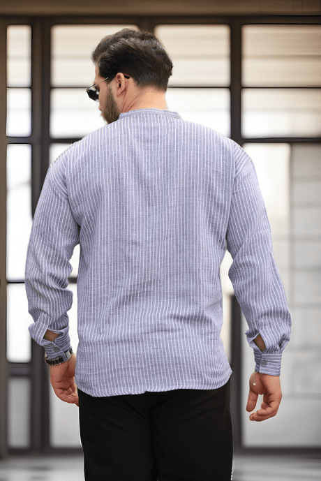 Çizgili Müslin Kumaş Yarım Pat Erkek Gömlek - Siyah