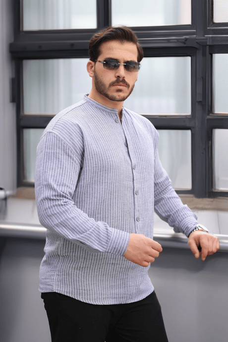 Doğal dokusu ve hafif yapısıyla öne çıkan Çizgili Müslin Kumaş Yarım Pat Erkek Gömlek, sıcak havalarda maksimum konfor sunar. Yumuşak ve nefes alabilir %100 pamuk müslin kumaşı sayesinde gün boyu ferahlık sağlar. Modern çizgili deseni ve yarım pat düğmeli tasarımıyla hem günlük hem de şık kombinler için idealdir. Kumaş İçeriği: %100 Pamuk Müslin Kumaş Detaylar: Yarım pat düğmeli kapama, uzun kol, çizgili desen, klasik yaka Renk Seçenekleri: Siyah, Mavi, Bej Kombin Önerisi: Keten pantolonlar ve hasır tabanlı ayakkabılarla rahat ve şık bir yaz kombini oluşturabilirsiniz.