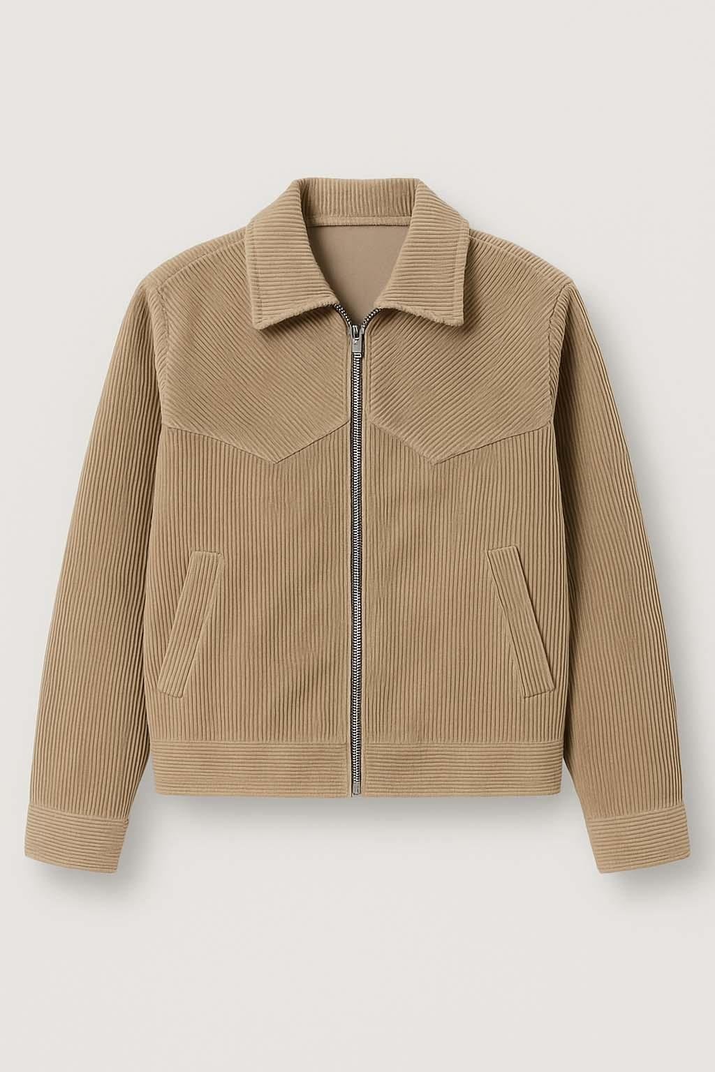 Dreyer Fitilli Kadife Kumaş Fileto Cepli Fermuarlı Erkek Ceket - Bej
