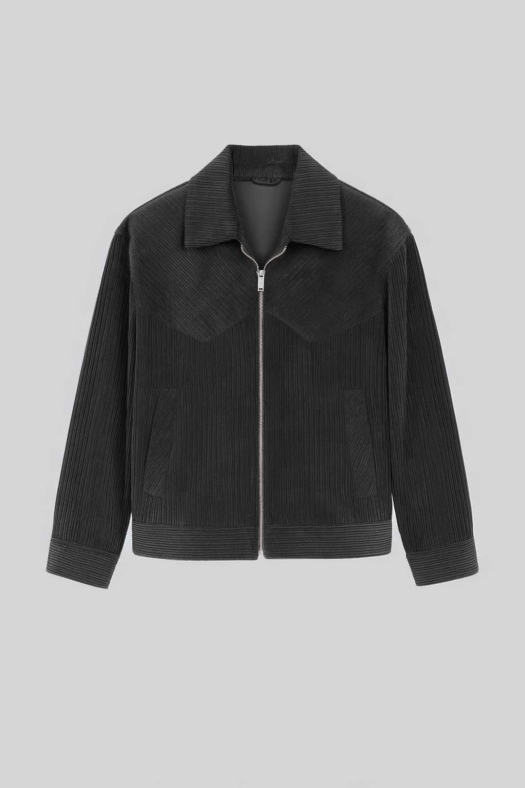 Dreyer Fitilli Kadife Kumaş Fileto Cepli Fermuarlı Erkek Ceket - Siyah