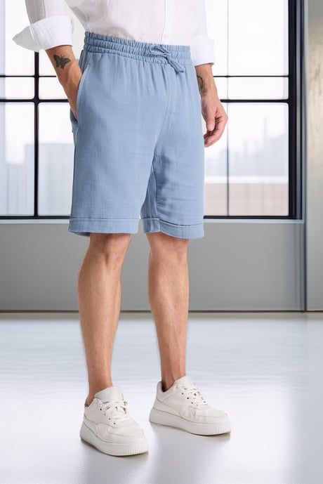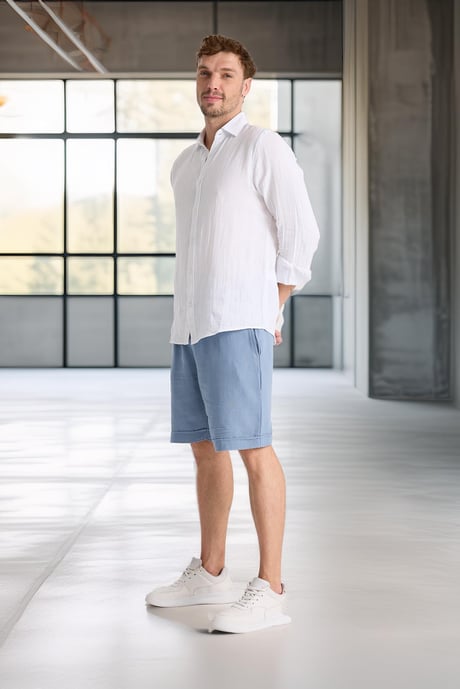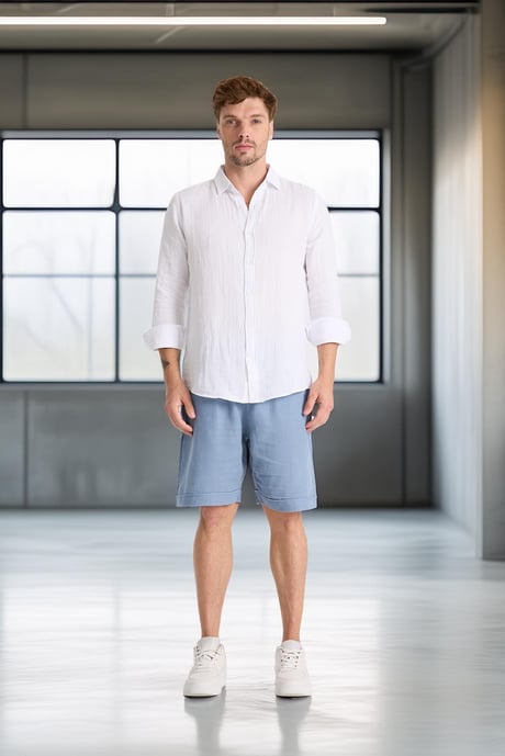 Hafif ve Rahat Duble Paça Müslin Erkek Şort – Yazın Doğallığını Üzerinde Taşı