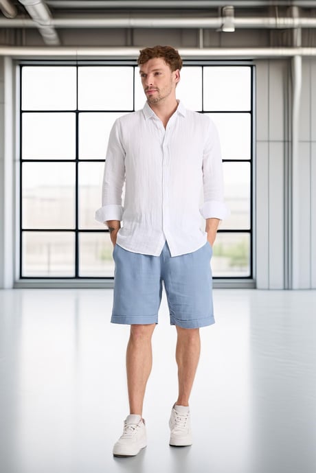 NEDEN BU ŞORT? ✔ Rahat kesimiyle özgürce hareket imkânı ✔ Şıklığı detaylarda – duble paça görünümle fark yaratır ✔ %100 pamuk – sağlıklı ve doğal kullanım ✔ Giy-çık pratikliği – hem şehirde hem sahilde ideal ✔ Kombin kolaylığı – tişört, gömlek veya atlet ile tamamlanabilir