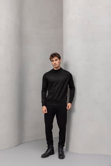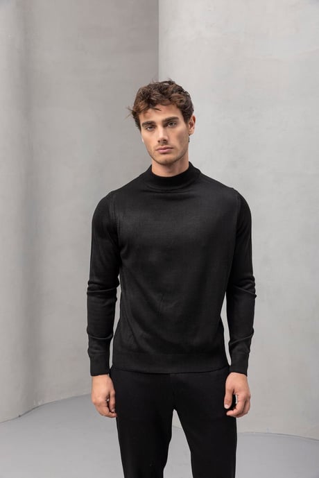 Fincher Yarım Balıkçı Fit Kalıp Boğazlı Erkek Kazak - Siyah