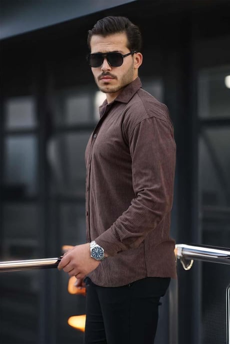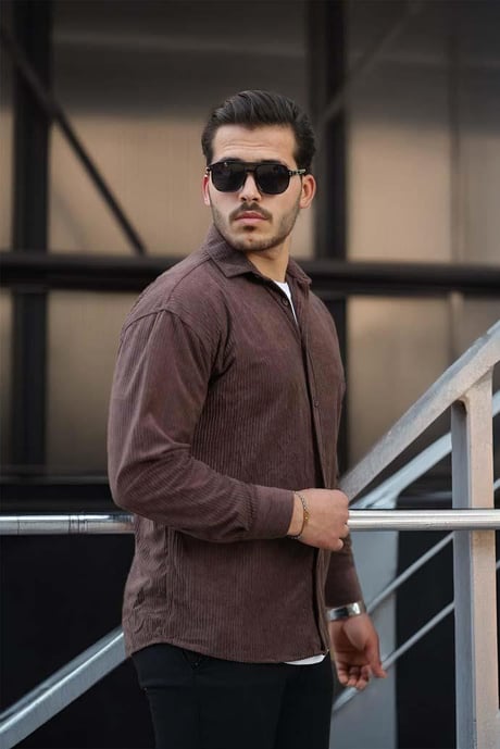 Fitilli Erkek Kadife Gömlek - Kahve