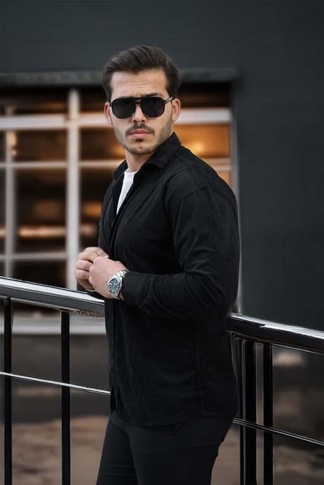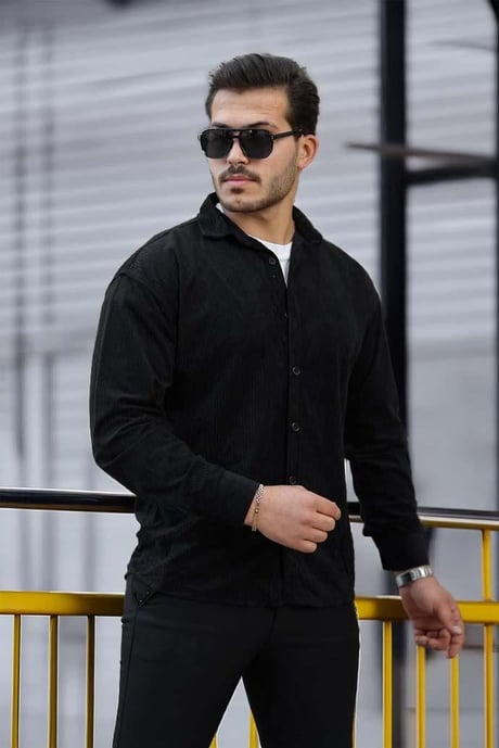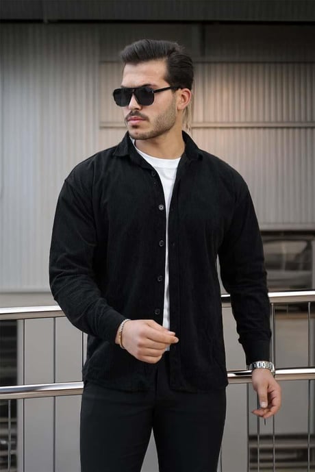 Fitilli Erkek Kadife Gömlek - Siyah
