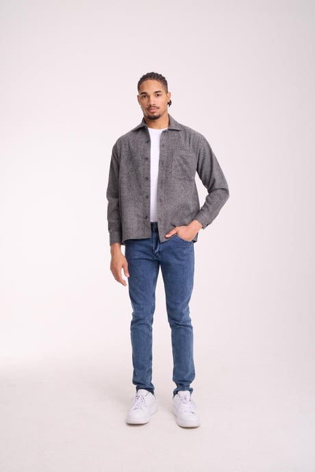 Frankel kaşe kumaş tek cepli relaxed fit erkek gömlek, sıcak tutan dokusu ve modern kesimiyle kış sezonunun en çok tercih edilen parçalarından biridir. Tok ve yumuşak kaşe kumaşı hem konfor hem de zarif bir görünüm sunarken, tek cepli tasarımı minimal bir detayla tamamlanmıştır. Relaxed fit kalıbı sayesinde gün boyu rahatlık sağlarken, hem gömlek hem de overshirt (dış gömlek) olarak kullanılabilir.