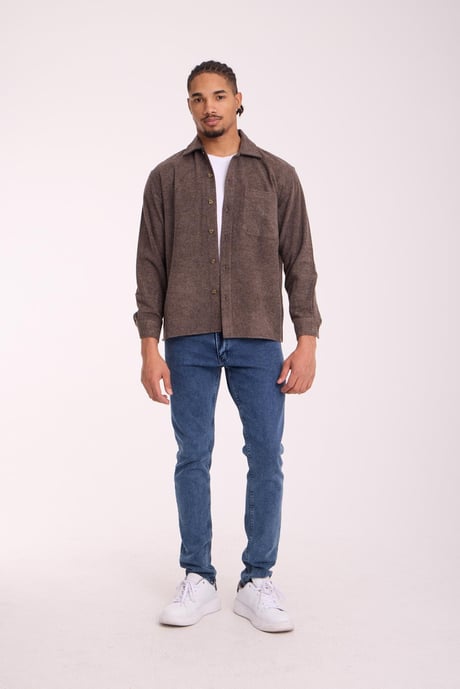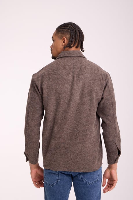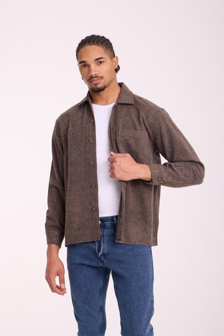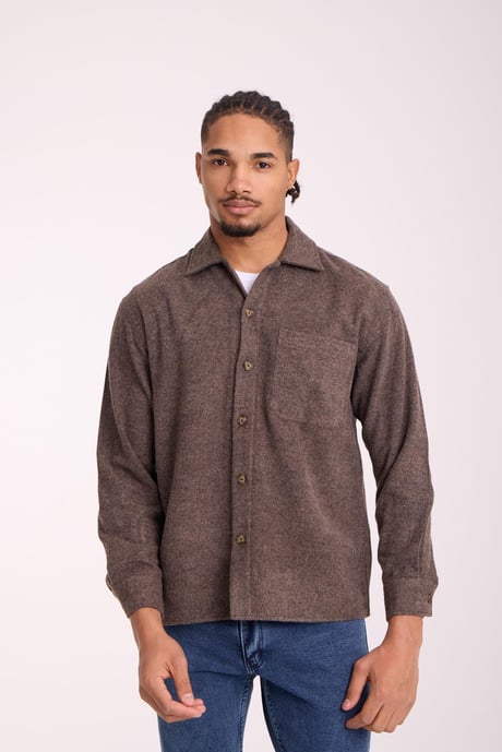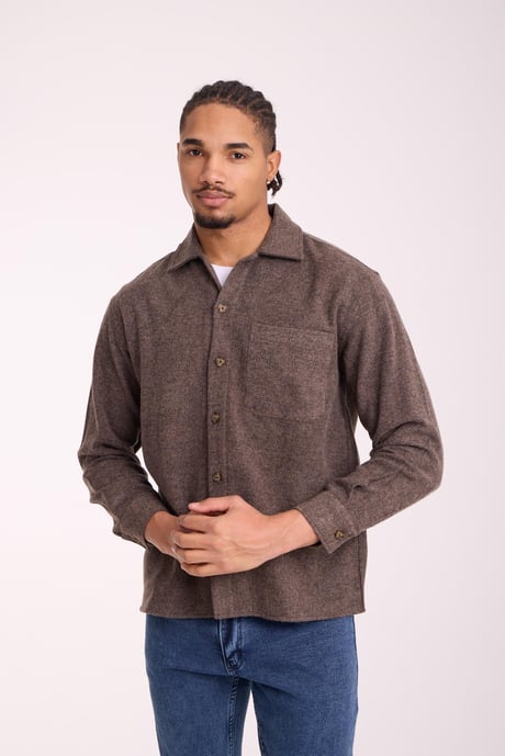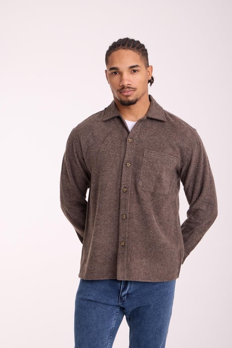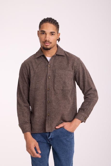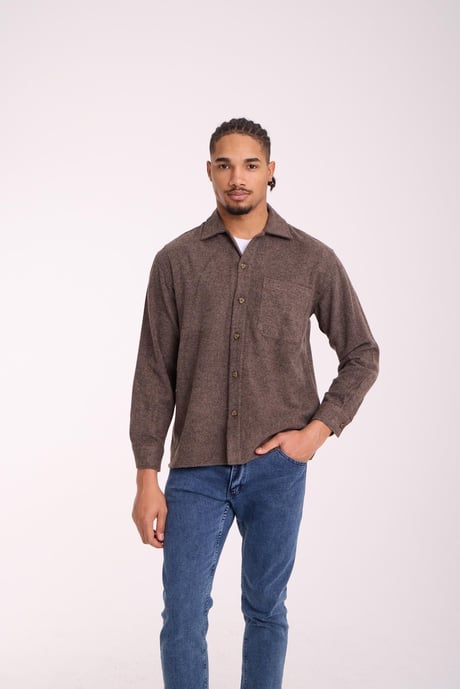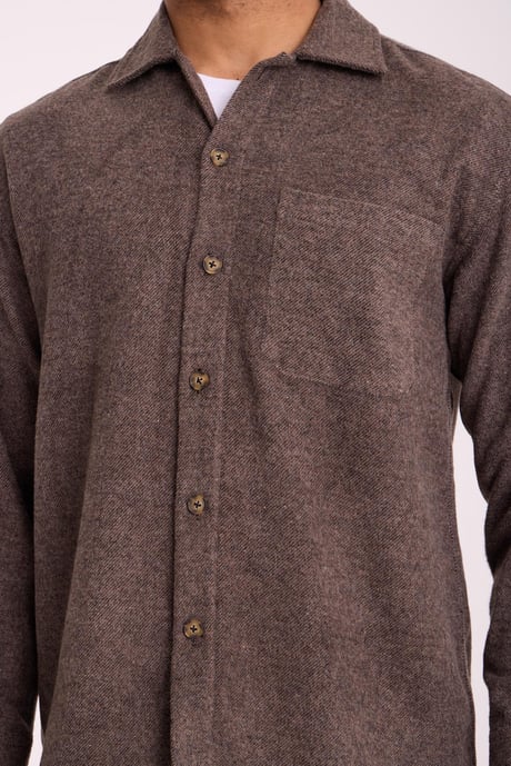 Frankel Kaşe Kumaş Tek Cepli Relaxed Fit Erkek Gömlek - Koyu Bej