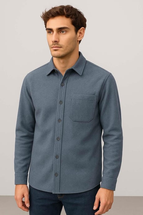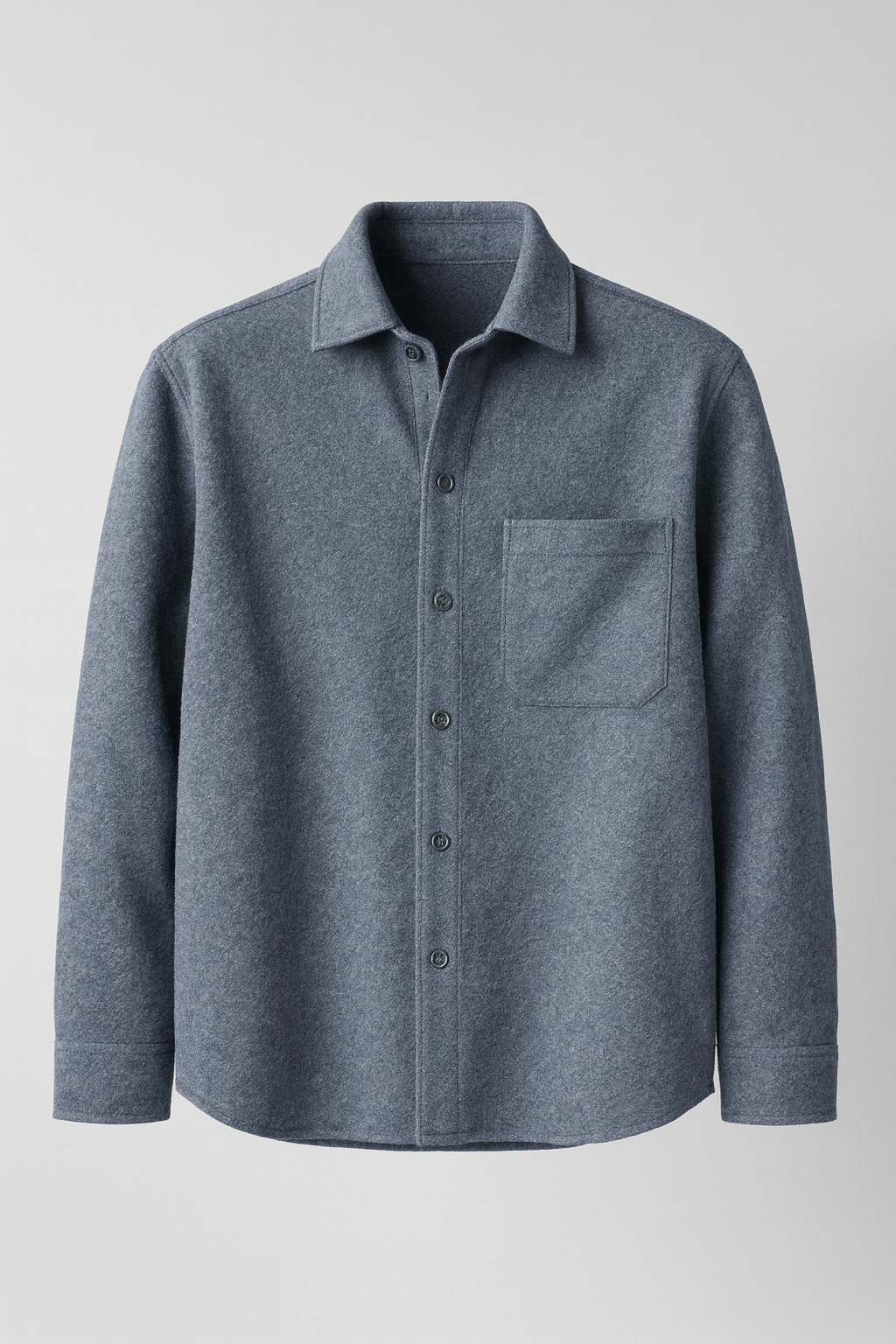 Frankel kaşe kumaş tek cepli relaxed fit erkek gömlek, sıcak tutan dokusu ve modern kesimiyle kış sezonunun en çok tercih edilen parçalarından biridir. Tok ve yumuşak kaşe kumaşı hem konfor hem de zarif bir görünüm sunarken, tek cepli tasarımı minimal bir detayla tamamlanmıştır. Relaxed fit kalıbı sayesinde gün boyu rahatlık sağlarken, hem gömlek hem de overshirt (dış gömlek) olarak kullanılabilir.