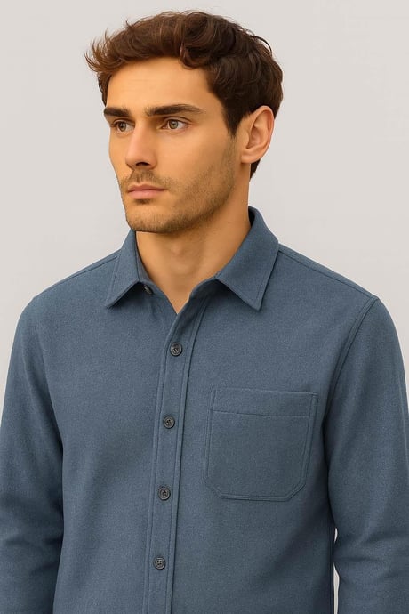 Frankel Kaşe Kumaş Tek Cepli Relaxed Fit Erkek Gömlek - Lacivert