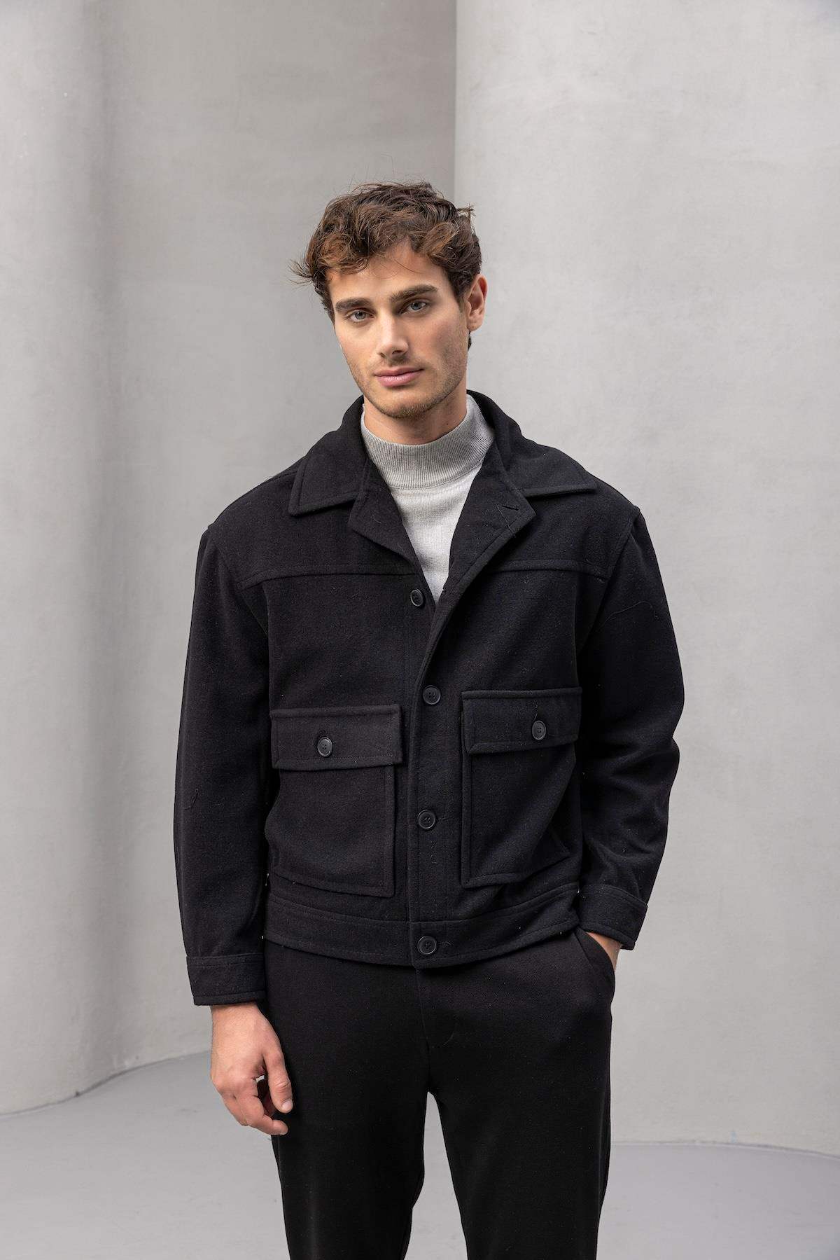 Gaspar Kaşe Kumaş Düğmeli Rahat Kalıp Erkek Ceket - Siyah