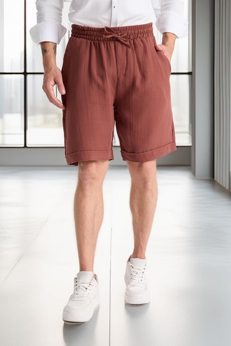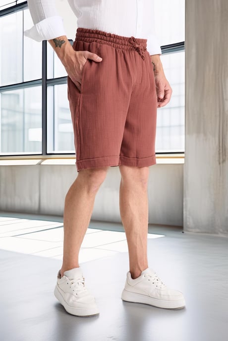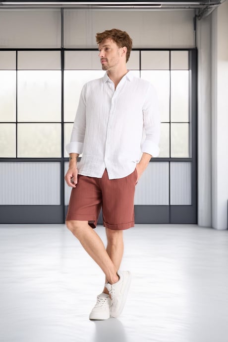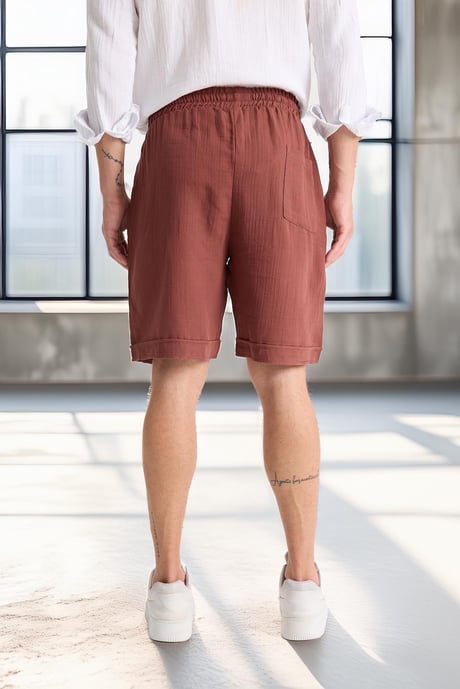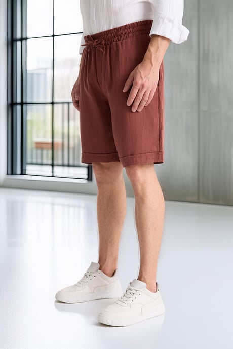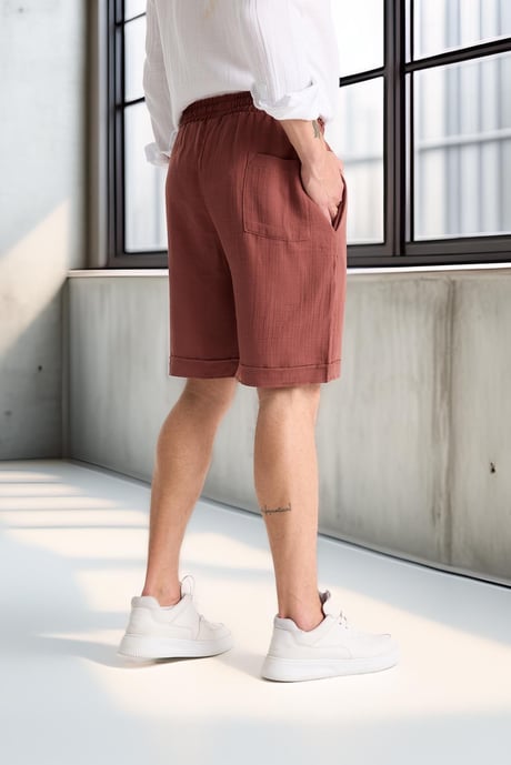 Hafif ve Rahat Duble Paça Müslin Erkek Şort - Kiremit