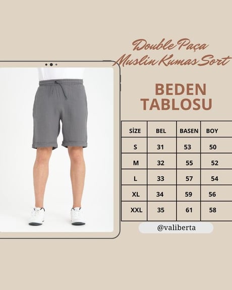 Sıcak havalarda ferahlık arayanlar için birebir! %100 pamuklu müslin kumaşıyla nefes alabilen, terletmeyen ve ultra hafif yapısıyla öne çıkan bu duble paça erkek şort, yaz aylarında dolabının vazgeçilmez parçası olmaya aday. Günlük hayatta, tatilde ya da sahil kenarında konforla stilin birleştiği noktadasın.