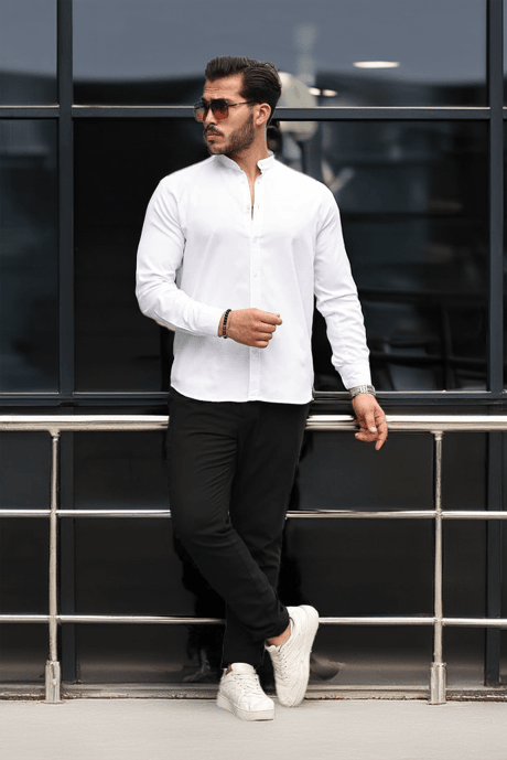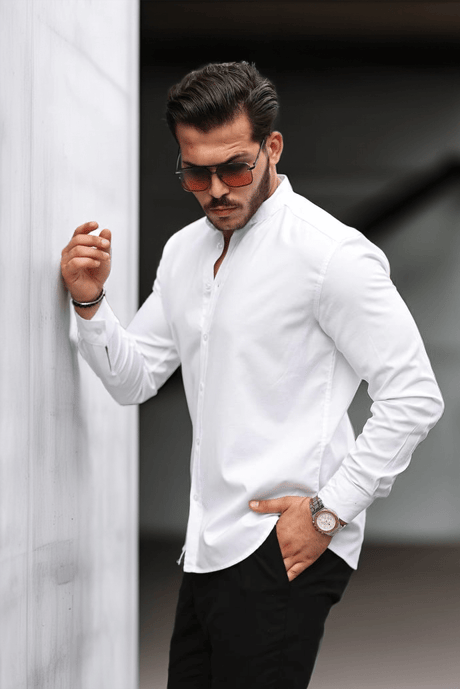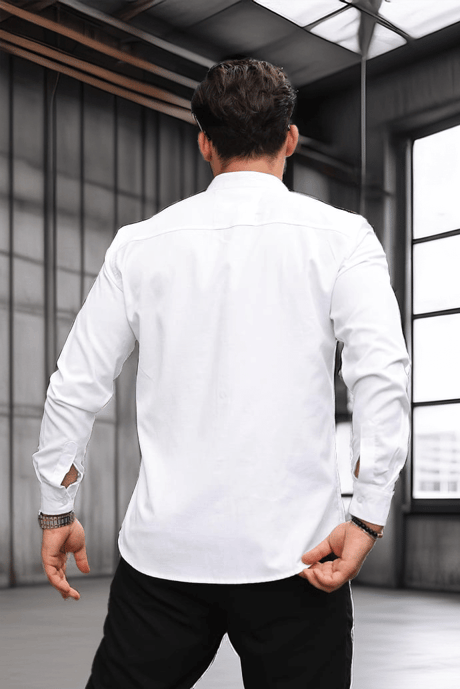 Hakim Yaka Oxford Kumaş Uzun Kol Gömlek - Beyaz