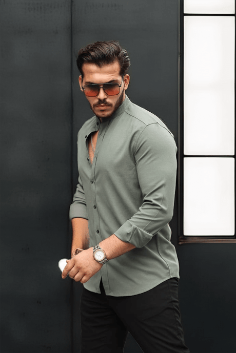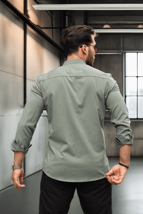 Hakim Yaka Oxford Kumaş Uzun Kol Gömlek - Haki