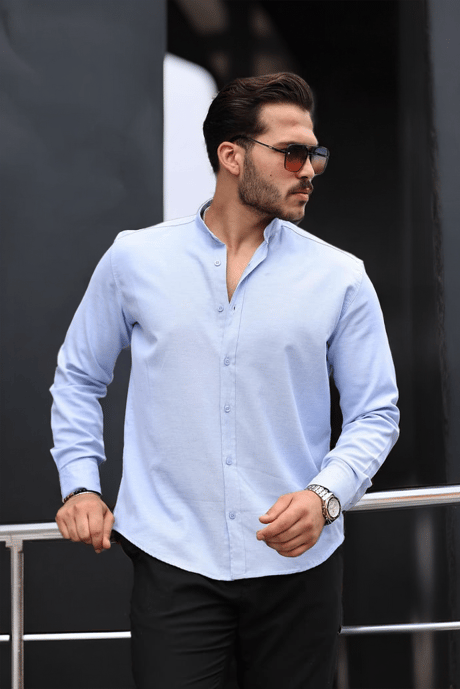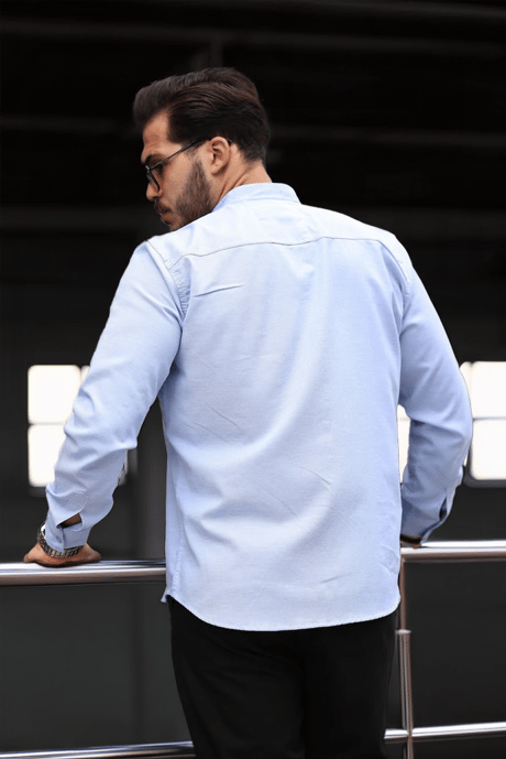 Hakim Yaka Oxford Kumaş Uzun Kol Gömlek - Mavi
