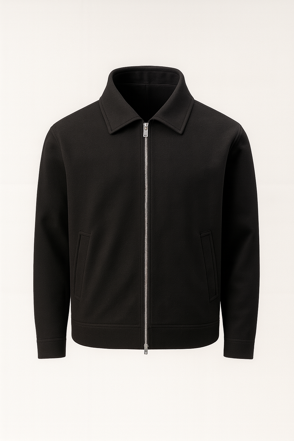 Kaşe Kumaş Fileto Cepli Fermuarlı Erkek Ceket - Siyah