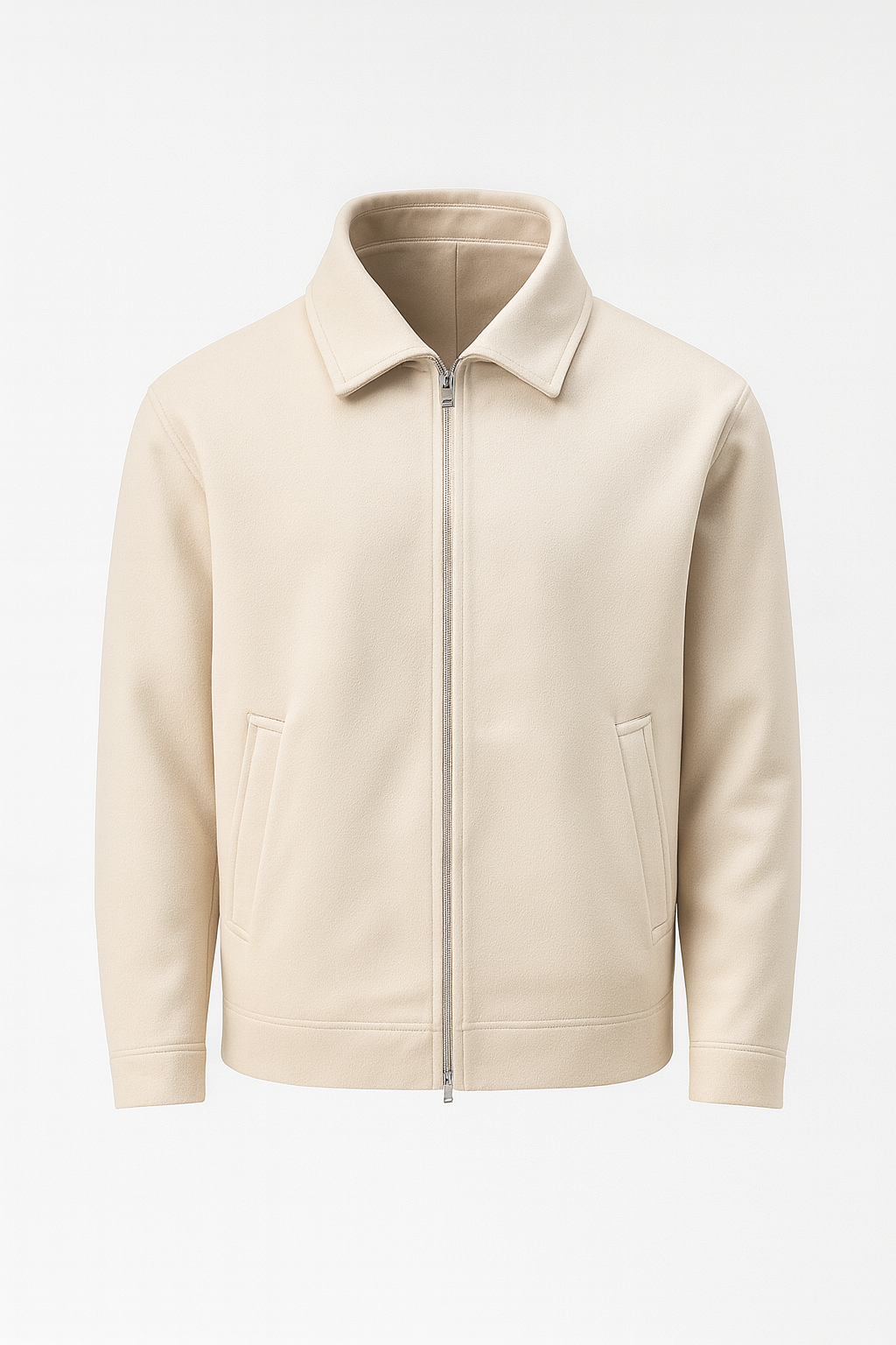 Kaşe Kumaş Fileto Cepli Fermuarlı Erkek Ceket - Taş