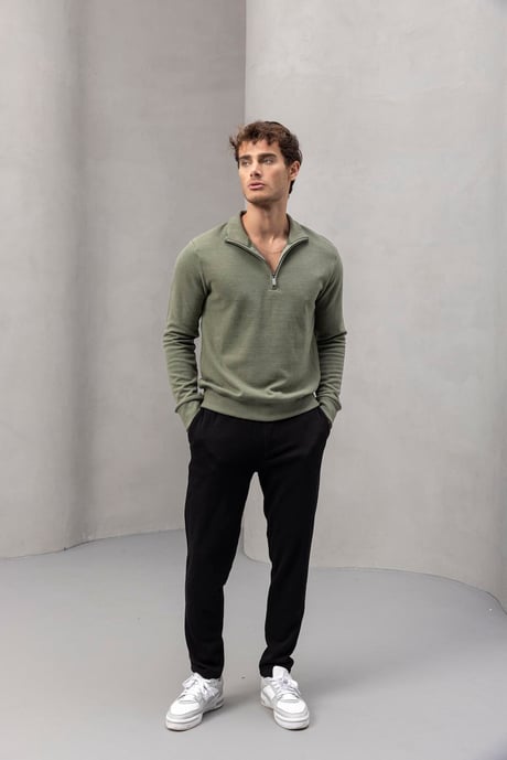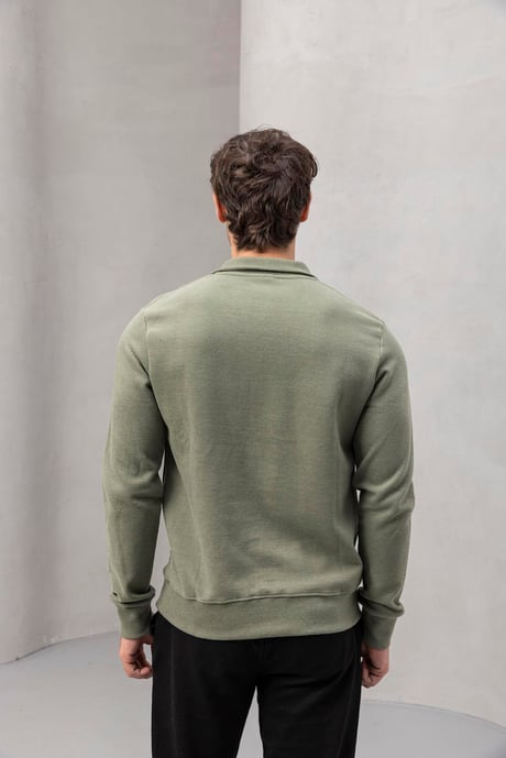 Selanik Örme Kumaş Yarım Fermuar Erkek Sweatshirt - Haki
