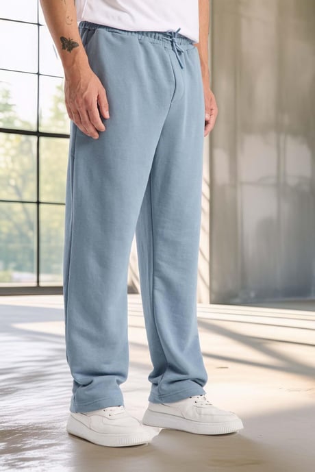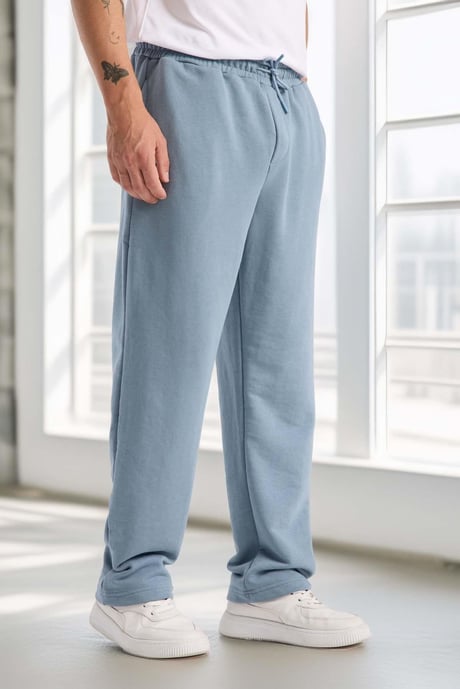 Mendes Baggy Kalıp Diagonal 3 İplik Kumaş Erkek Eşofman Altı Pantolon - Soğuk Mavi