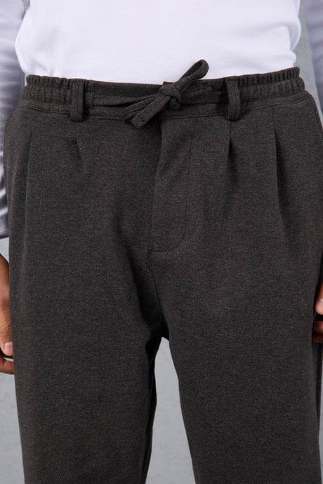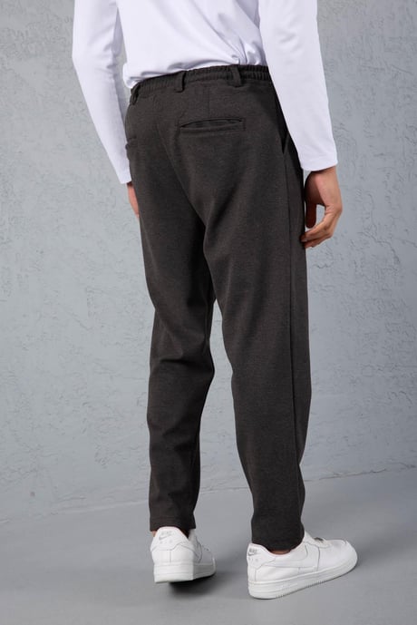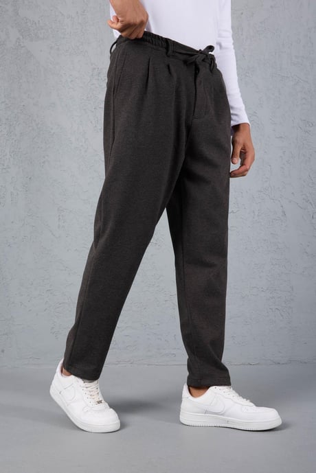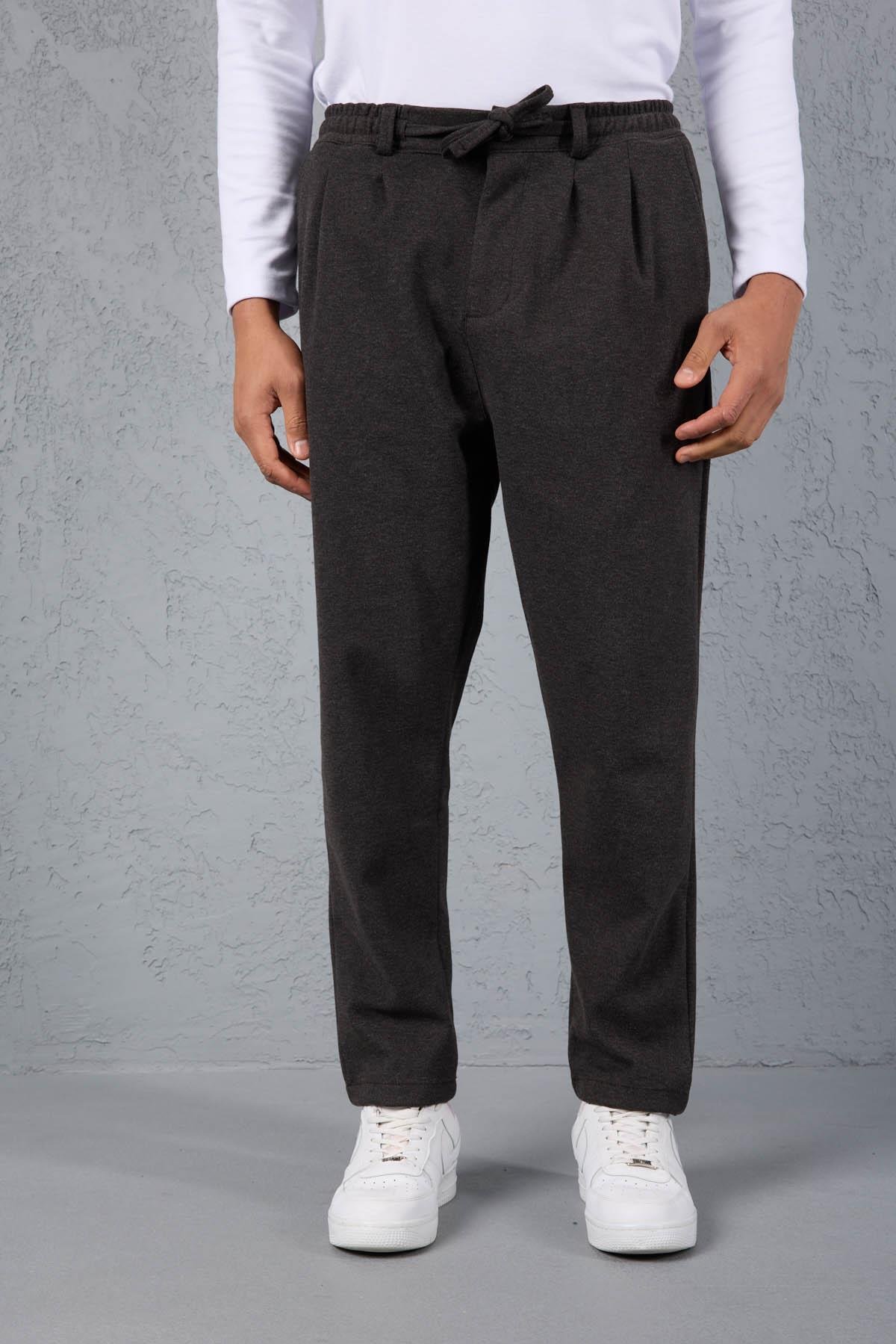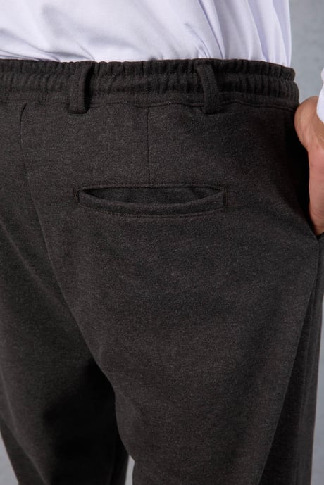 Milos Relax Fit Örme Kaşe Kumaş Fermuarlı Beli Lastikli Jogger Erkek Pantolon - Füme
