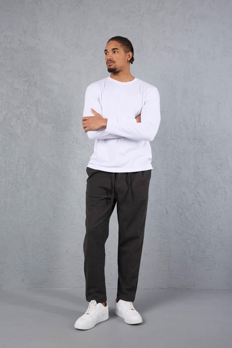 Milos relax fit örme kaşe kumaş fermuarlı beli lastikli jogger erkek pantolon, klasik görünümü modern konforla buluşturuyor. Tok yapılı örme kaşe kumaşı ile sıcak tutarken, likra içeriği sayesinde esnek bir kullanım sunar. Beli lastikli ve fermuarlı formu günlük kullanımda pratiklik sağlar. Relax fit kalıbı vücuda rahat oturur ve hem smart casual hem de şehir stiline uygun bir görünüm oluşturur.