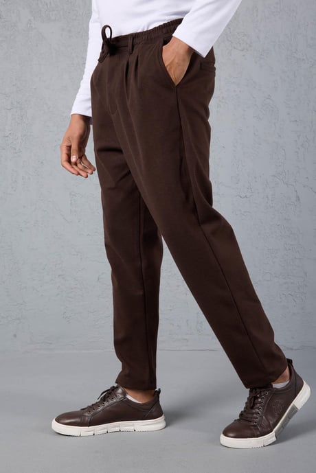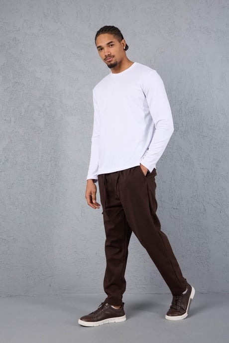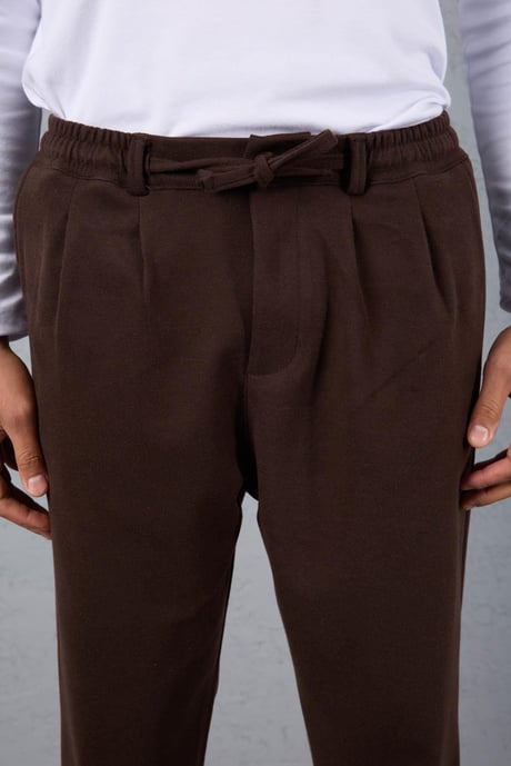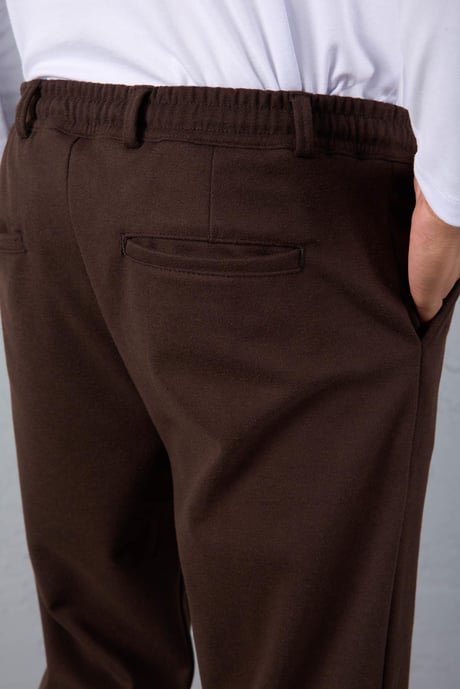 Milos Relax Fit Örme Kaşe Kumaş Fermuarlı Beli Lastikli Jogger Erkek Pantolon - Kahve