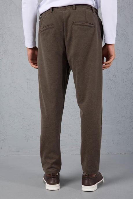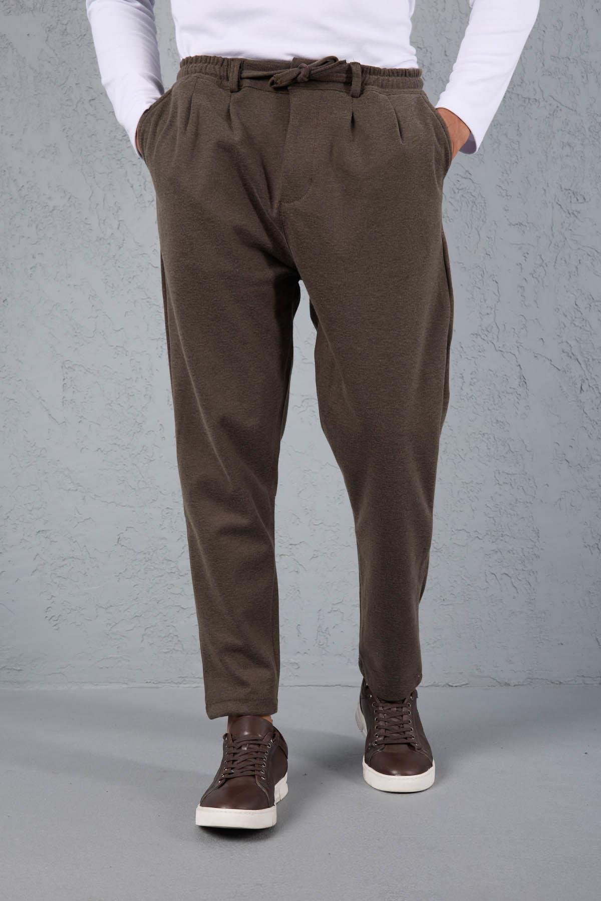 Milos Relax Fit Örme Kaşe Kumaş Fermuarlı Beli Lastikli Jogger Erkek Pantolon - Vizon