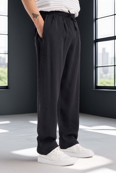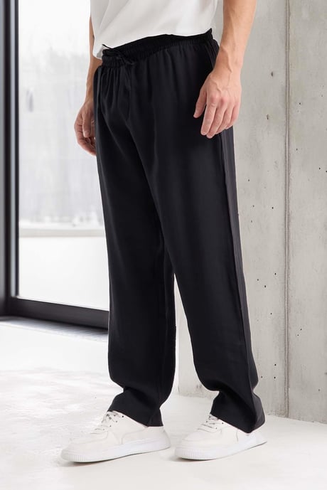 Modal Kumaş Rahat Kalıp Düz Paça Jogger Erkek Pantolon - Siyah