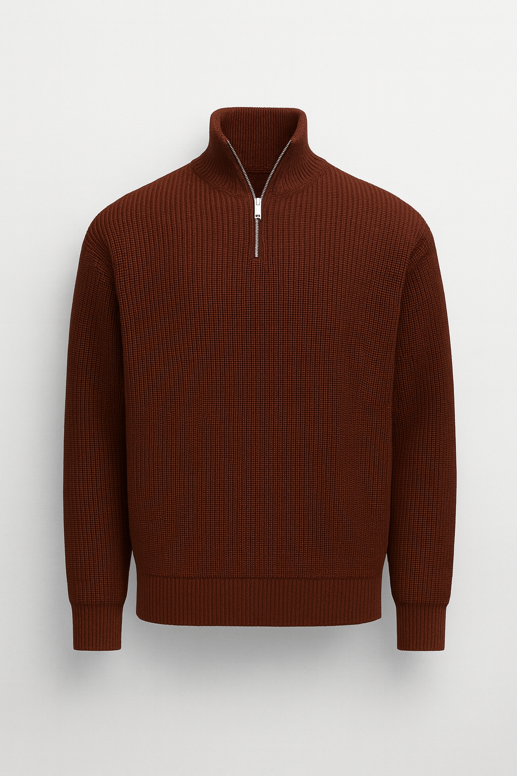 Oversize Selanik Örgü Yarım Fermuar Erkek Triko Kazak - Kahve