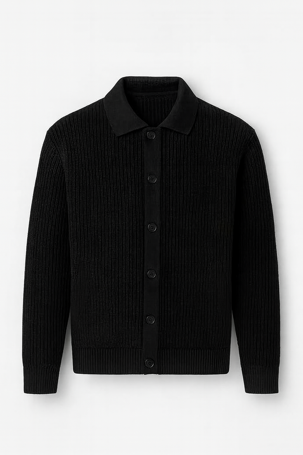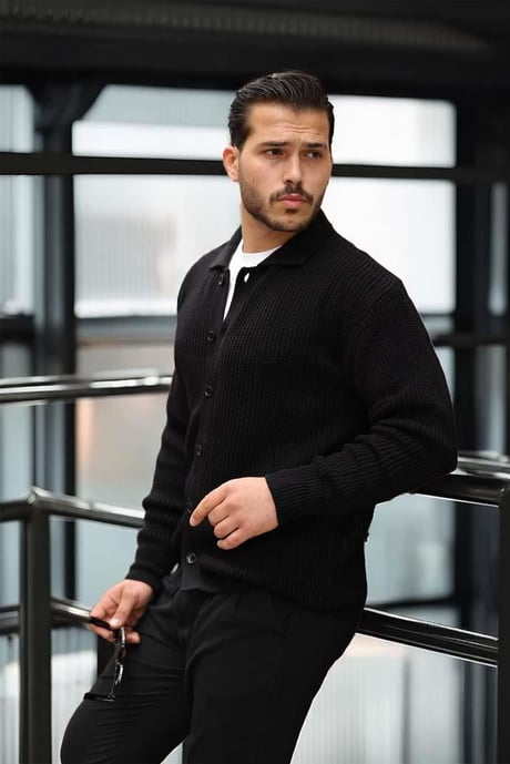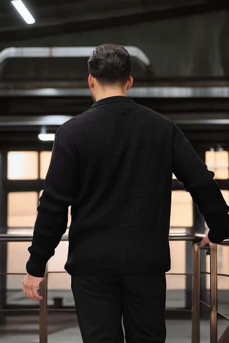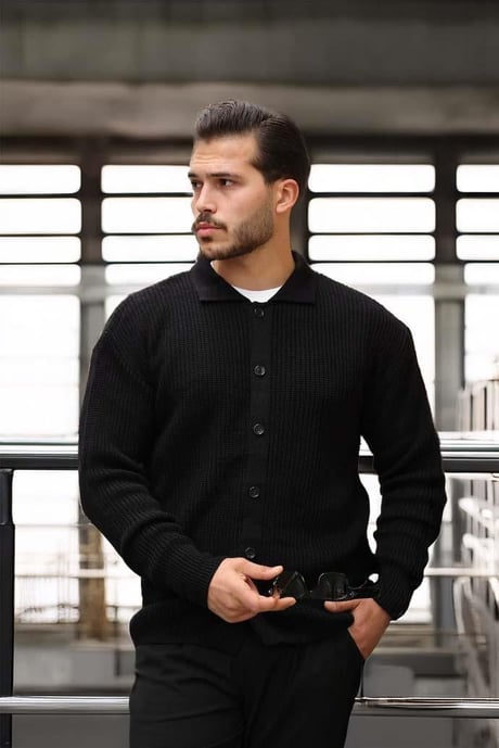 Oversize Selanik Örgü Düğmeli Erkek Hırka-Siyah