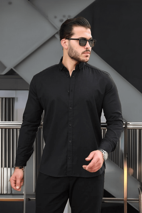 Likralı Regular Fit Nefes Alabilir Klasik Erkek Oxford Gömlek - Siyah