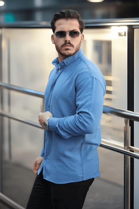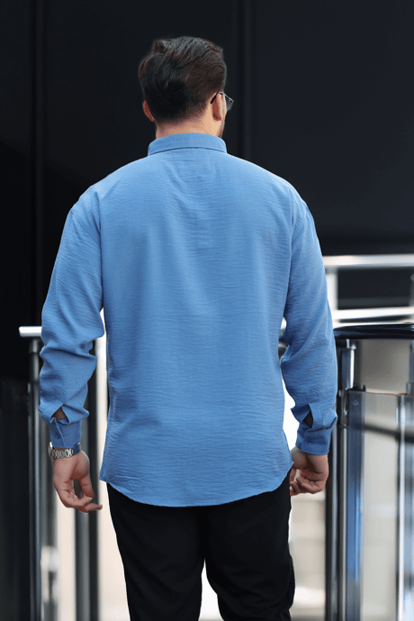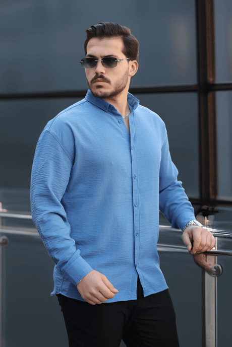 Pera Kumaş Keten Görünümlü Yarım Oversize Uzun Kollu Erkek Gömlek – Şehirli Duruş, Doğal Görünüm