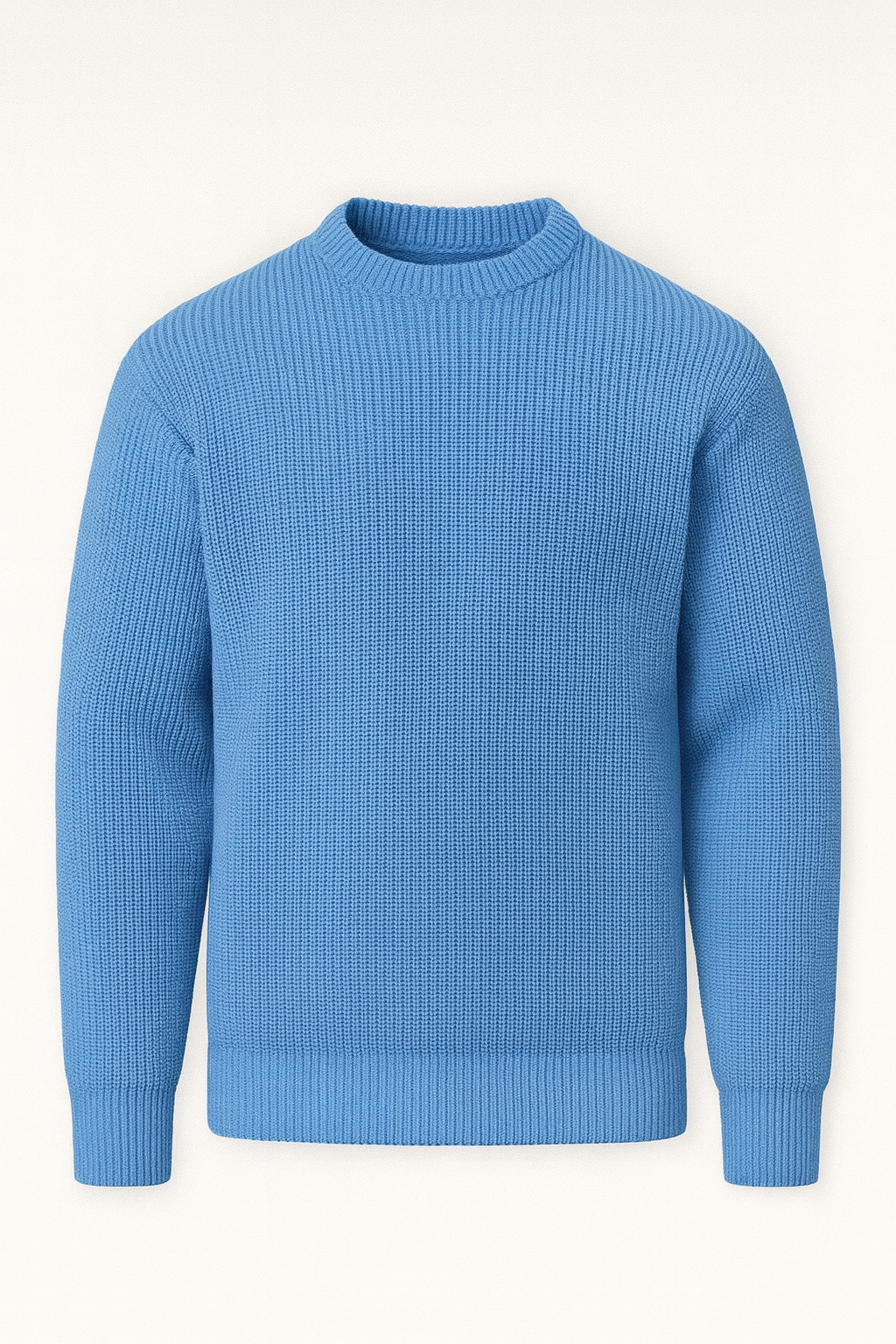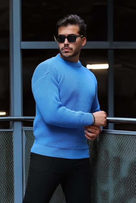 Pilar Oversize Selanik Örgülü Bisiklet Yaka Erkek Triko Kazak - Açık Mavi