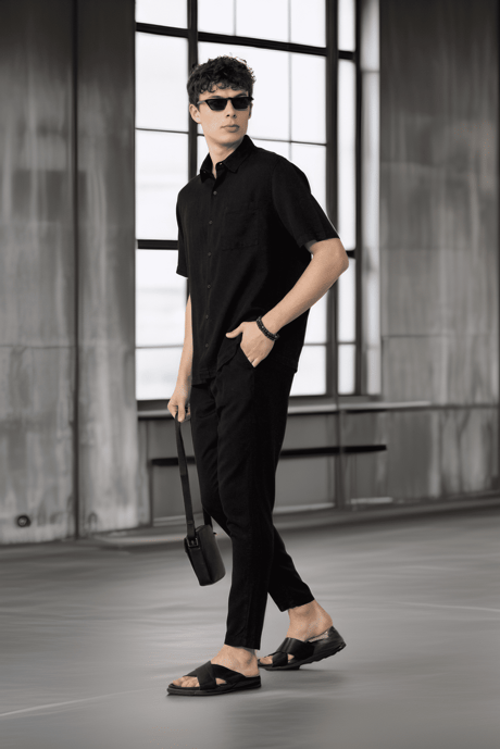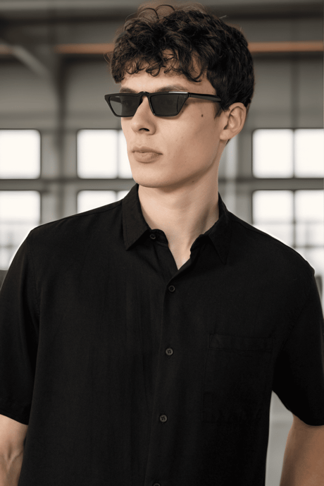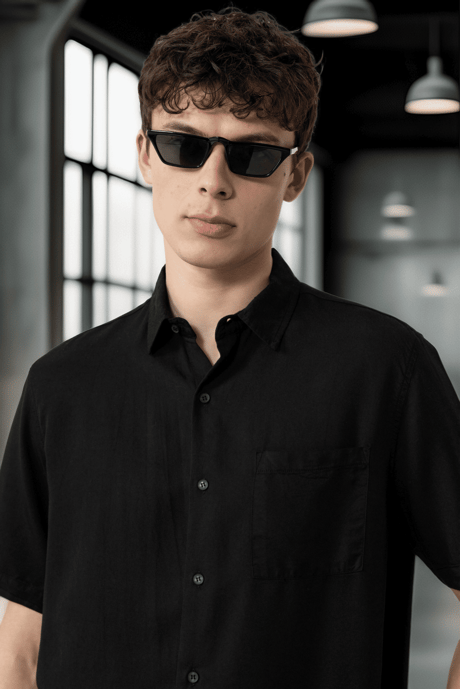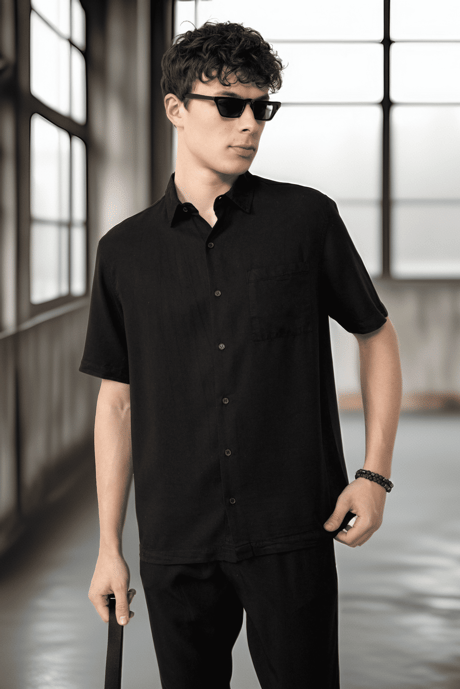 Tek Cepli Pamuk Kumaş Doğal Dokulu Oversize Erkek Gömlek - Siyah