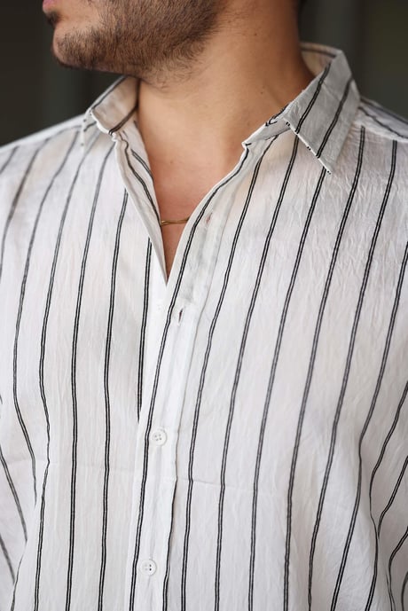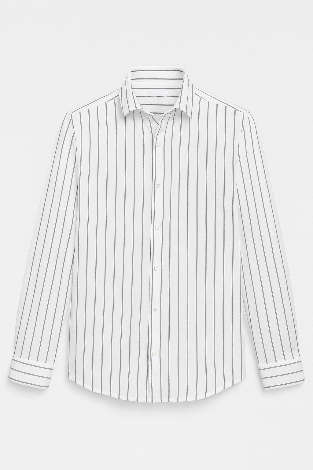 Scorsese Çizgili Relaxed Fit Erkek Gömlek - Beyaz