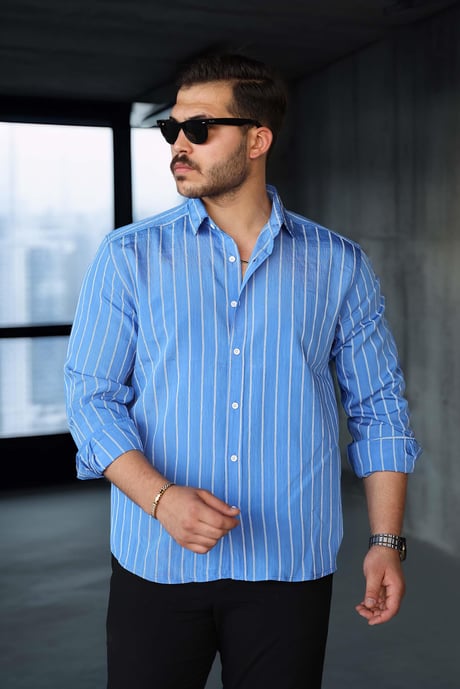 Scorsese Çizgili Relaxed Fit Erkek Gömlek - Parlement Mavi