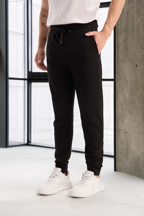 Spike Diagonal 3 İplik Manşet Paça Erkek Pantolon Eşofman Altı -Siyah