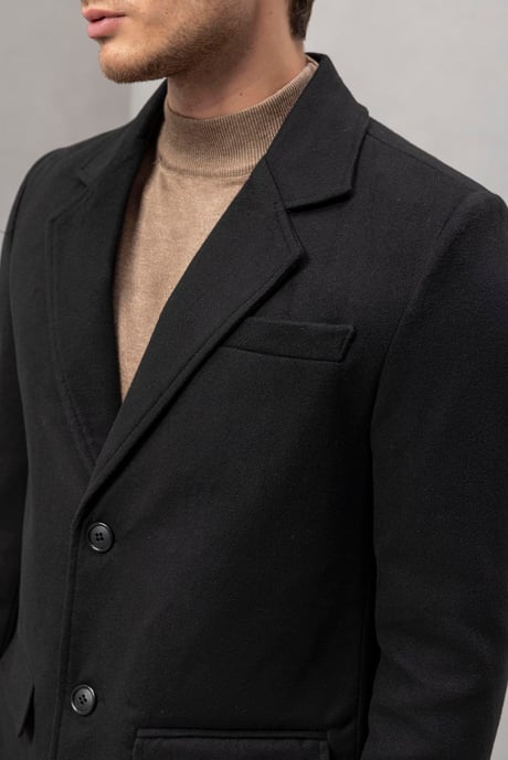 Kaşe kumaş fileto cepli uzun erkek kaban, klasik şıklığı modern bir siluetle buluşturuyor. Tok ve sıcak tutan kaşe dokusu sayesinde kış aylarında maksimum konfor sağlarken, uzun kesimi ürüne zamansız bir hava katıyor. Fileto cep detayı minimalist bir şıklık sunarken, modern kalıbı hem günlük hem de ofis kombinlerine uyum sağlıyor.